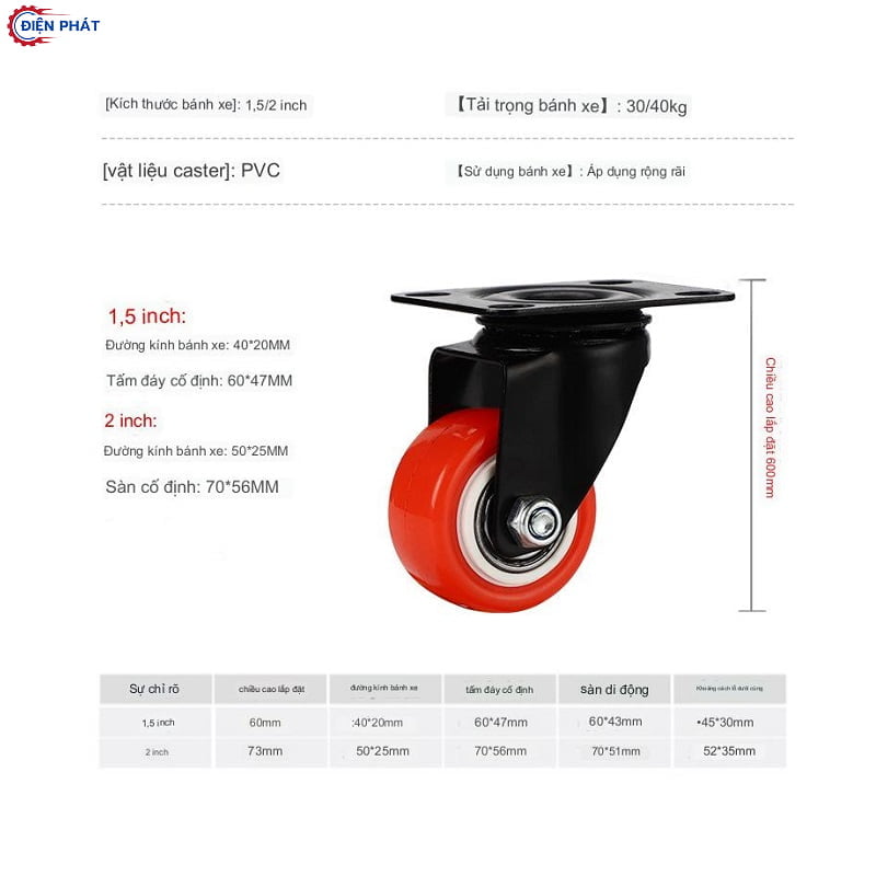 - Lốp nhựa PU chịu lực, chống mài mòn, chống nước và hóa chất tốt.